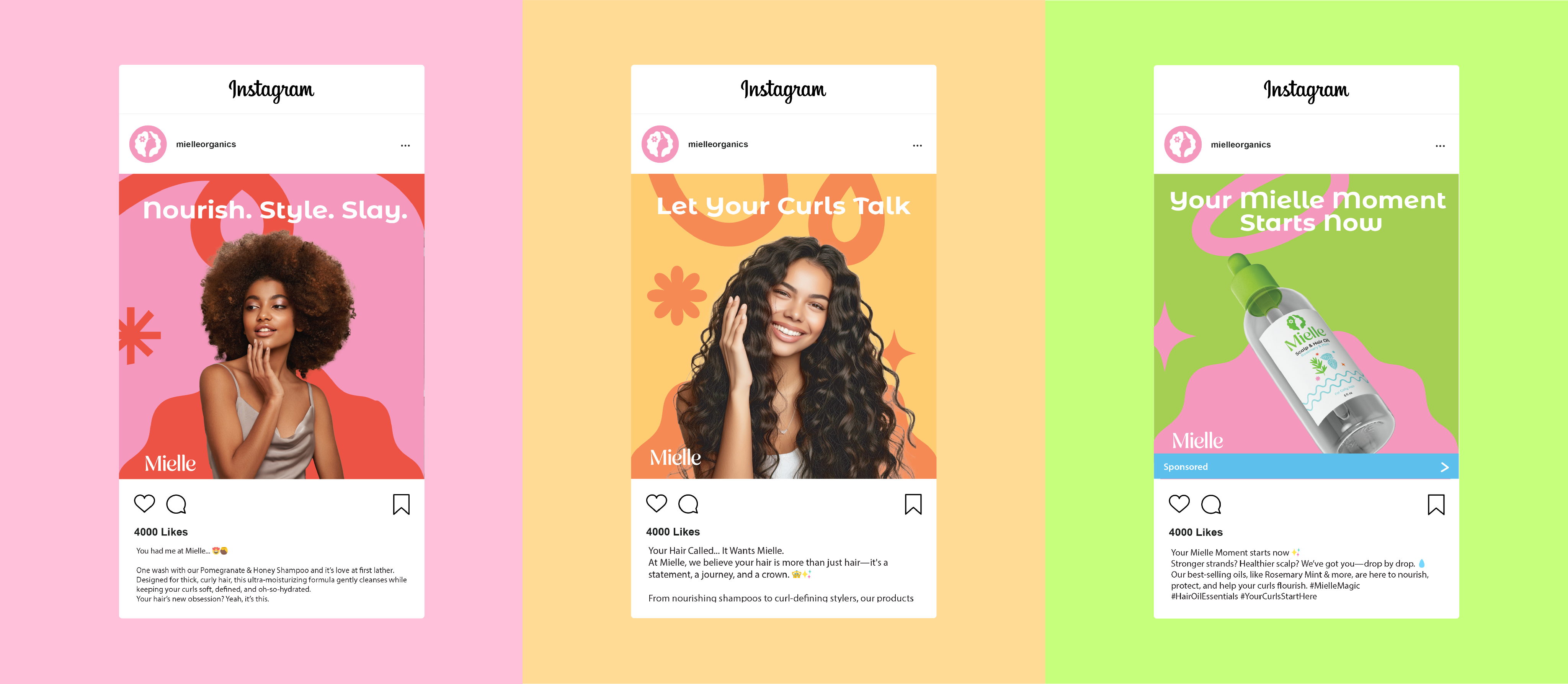 Much of Mielle's marketing is done through social media, applications in instagram posts and email marketing further showcase refreshed identity in a dynamic and interactive way. Digital platforms allow Mielle to educate audiences about healthy hair practices, showcase real customer results, and build community in real time, helping retain loyal customers while expanding reach to new, younger, and digitally native consumers